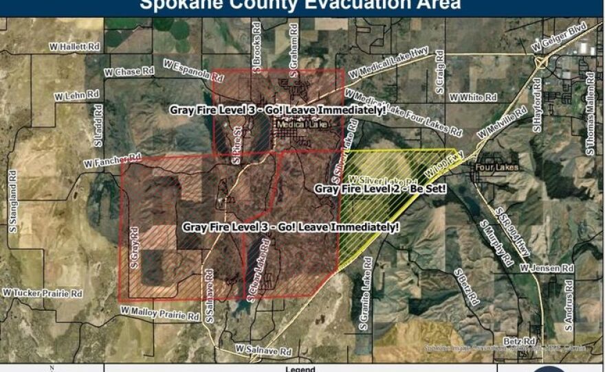 Gray Fire Medical Lake Evacuation Map Wanes Gray Fire Incident Maps | InciWeb: The Medical Lake community reflect on the 1 Year Anniversary of the Gray Fire and the loss people went through. . ReImagine Medical Lake hosted a free event at Waterfront Park to honor the past and welcome the future. Exactly one year ago, the Gray Fire burned over 10,000 acres and burned down 240 homes in .